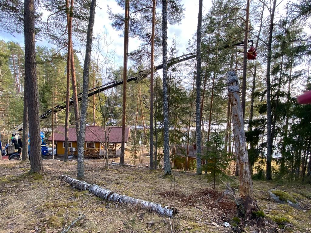 Nyt on pituutta ja ulottuvuutta! Uudella giljotiinikouralla poistamme yksittäiset puut rakennusten läheltä, muiden puiden välistä sekä muista vaativista kohteista turvallisesti.